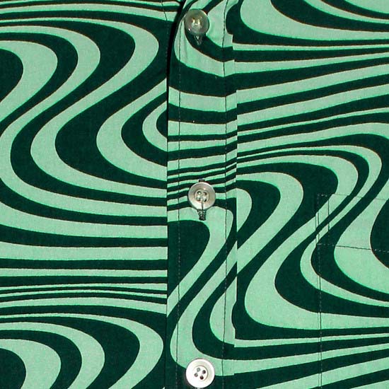 Laat je meevoeren op het ritme van de jaren 70 met het Wavyline overhemd van Chenaski – een iconisch retro design in frisse mint- en donkergroene tinten. Het subtiel golvende patroon is een knipoog naar de discovloer, de dansende schaduwen en de tijd waarin stijl en lef hand in hand gingen.